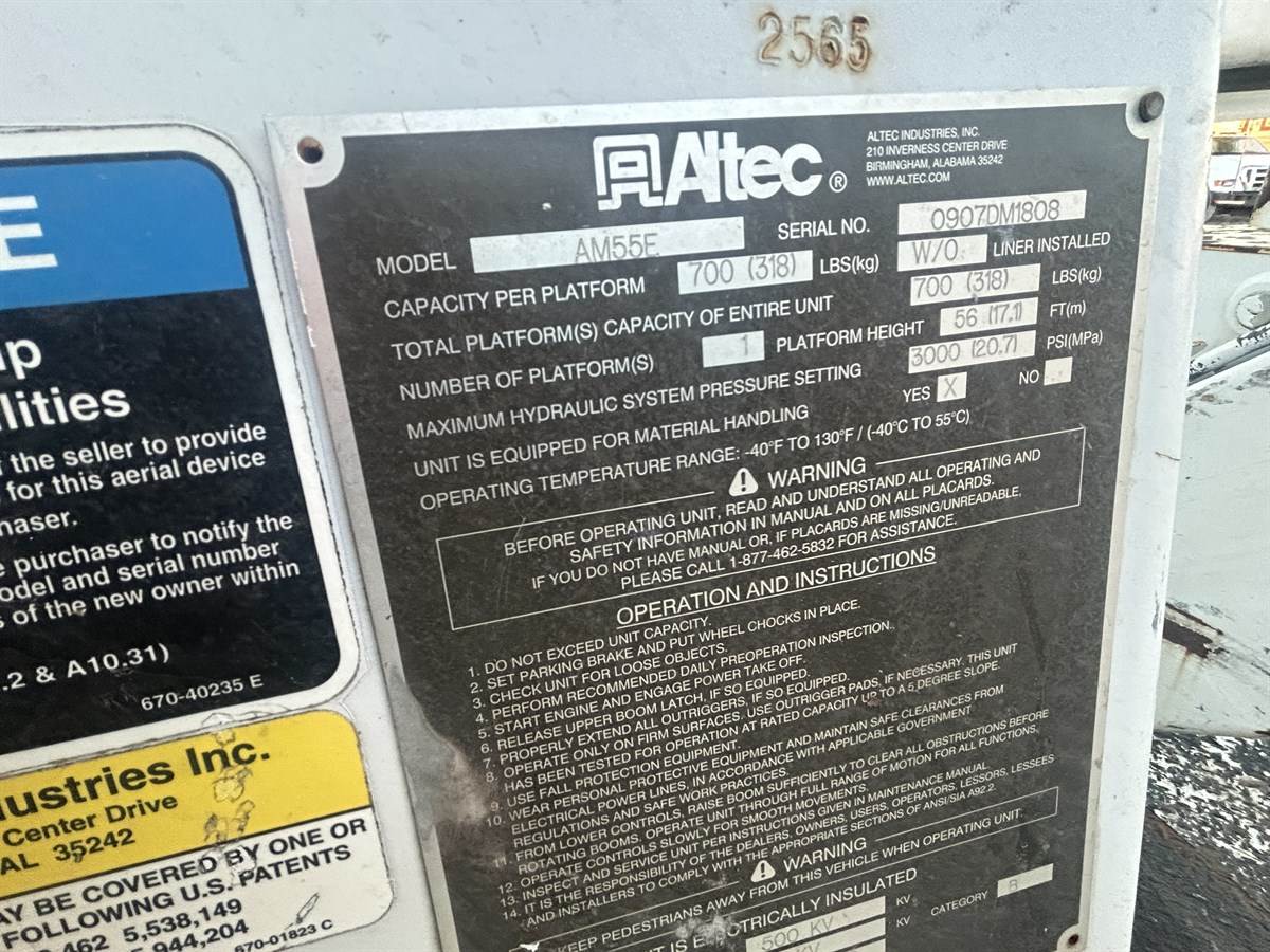Altec AM55E 61' Working Height Over-Center Boom with Material Handler (S/N#: 0907DM1808)